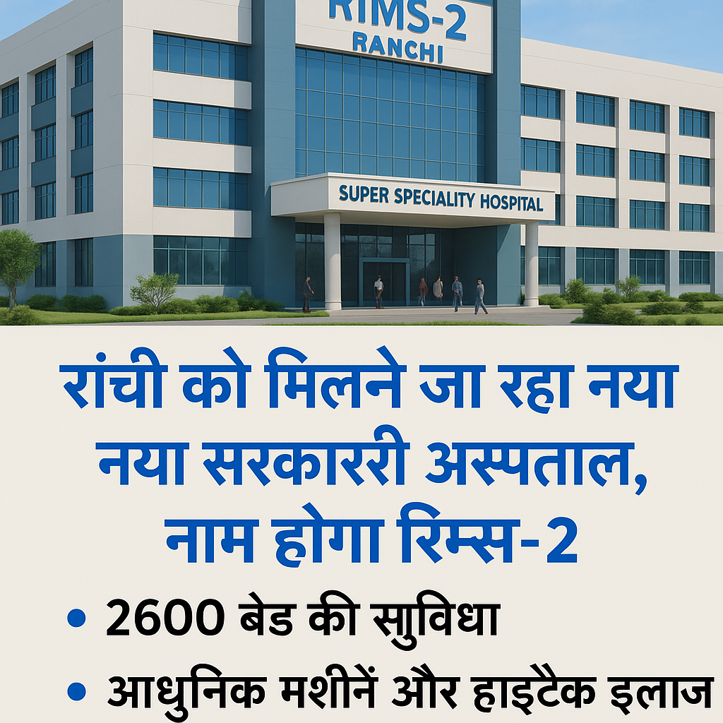 रांची के लोगों के लिए बड़ी खबर है। अब इलाज के लिए दिल्ली या दूसरे शहरों में नहीं जाना पड़ेगा, क्योंकि रांची में ही एक नया 2600 बेड वाला अस्पताल बनने जा रहा है। इसका नाम होगा रिम्स-2।